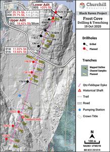 TORONTO, Oct. 20, 2025 (GLOBE NEWSWIRE) -- Churchill Resources Inc. (“Churchill” or the “Company”) (TSXV: CRI) is pleased to provide an update on its ongoing exploration at the Black Raven Property in Central Newfoundland, host to the historic Frost Cove Antimony and Stewart Gold mines. The program, part of the first comprehensive exploration for antimony, gold, and silver on the property, commenced on September 15, 2025, and includes 5,000m of drilling and extensive trenching,
